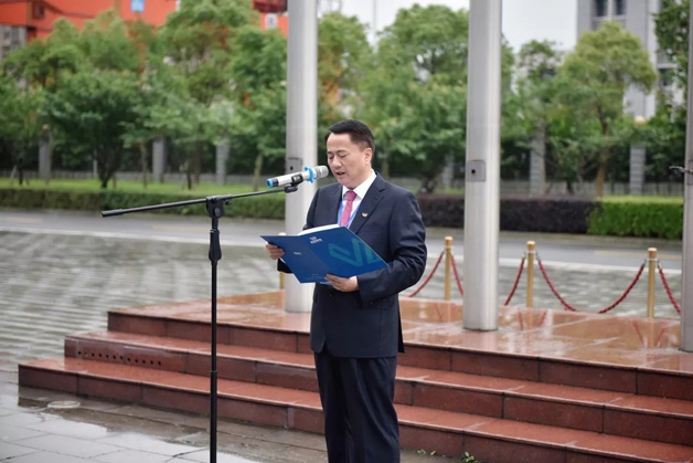 上午8時50分,威勝控股董事會吉主席、威勝控股本部領導、電氣董事會成員及電氣全體同仁齊聚升旗廣場。升旗儀式由威勝電氣總裁曾辛先生主持,儀式在莊嚴的升國旗、唱國歌中隆重開啟,全體電氣人整裝肅立,向國旗致敬,用高昂的士氣和拳拳赤子心唱出了對祖國的熱愛。