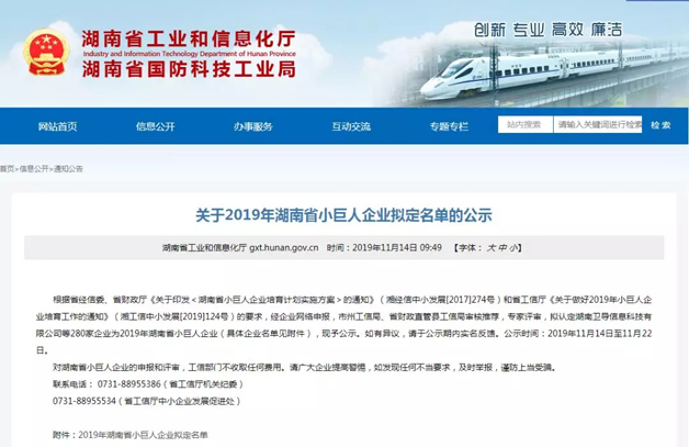 11月14日,湖南省工信廳公布了2019年湖南省小巨人企業擬定名單,經企業網絡申報,市州工信局、省財政直管縣工信局審核推薦及專家評審,湘潭19家企業成功入選,惟遠能源產業技術有限公司榜上有名。