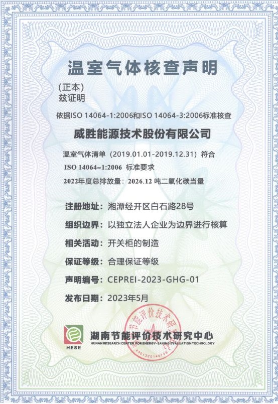 惟遠能源順利獲得湖南節能評價技術研究中心溫室氣體核查聲明