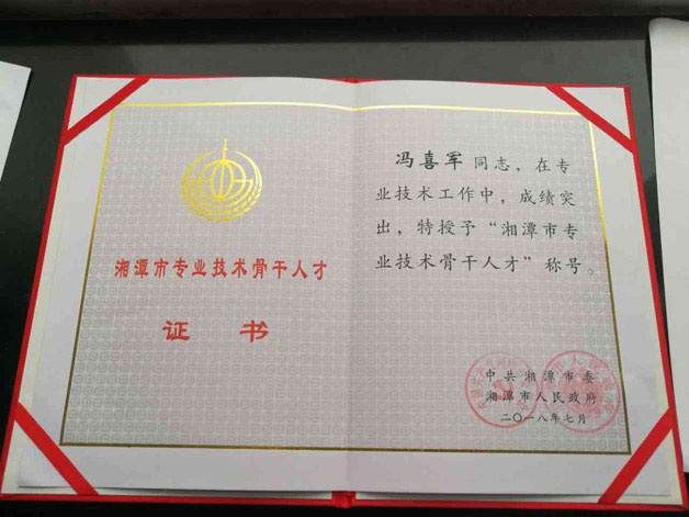 湘潭市專業(yè)技術(shù)骨干人才證書(shū)